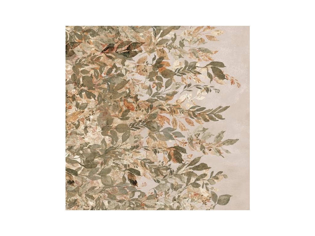 Keramická matná dekorace, podklad imitující šedý beton s motivem různě barevných listů, vzhled fresky, má dvě na sebe navazující části, vhodné do koupelny, kuchyně