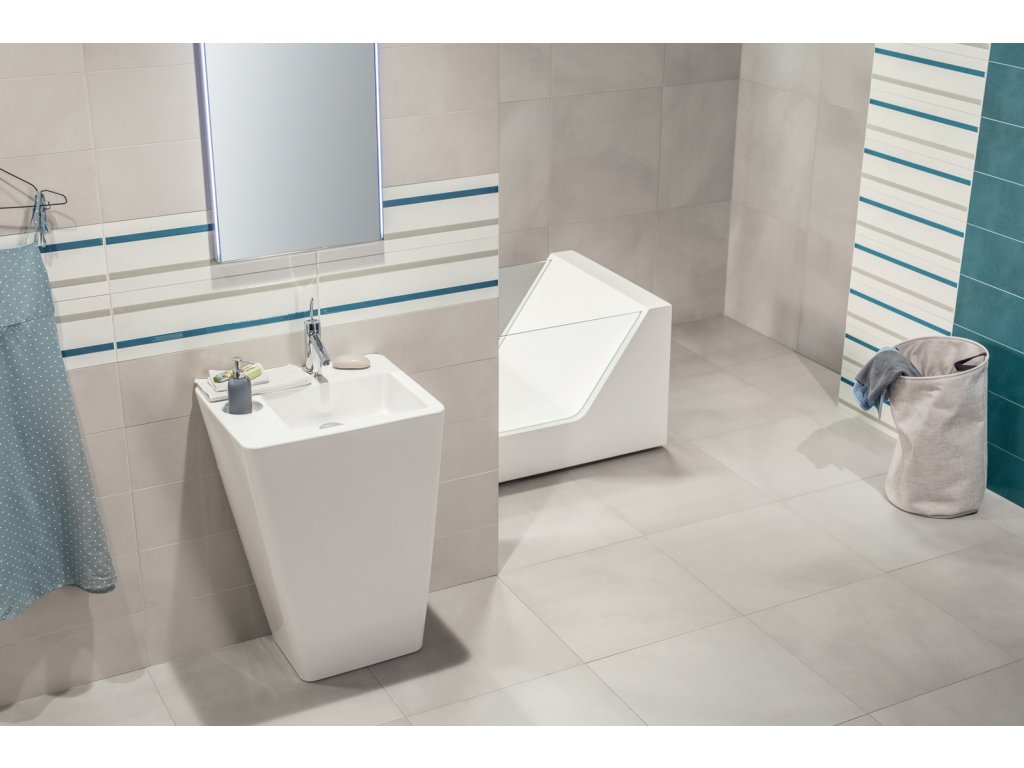 Rektifikované dlaždice 60 x 60 cm díky jednotnému designu podtrhují komplexnost série pro řešení interiéru v koupelně i kuchyni v mnoho variantách.