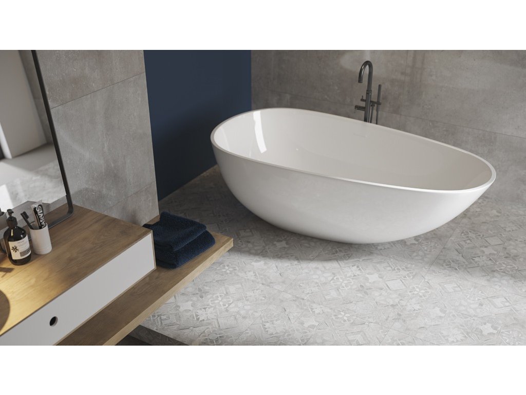 Matný nebo leštěný povrch kameniny s jemnou strukturou umožní použití na velké plochy stěn a podlah, ale i kombinování s výraznými dekory jako u patchworkové dekorace, u vybraných prostorových prvků. Spojení základních obkladů a dekorů z kolekce Softcement vypadá skvěle v moderních koupelnách a kuchyních.