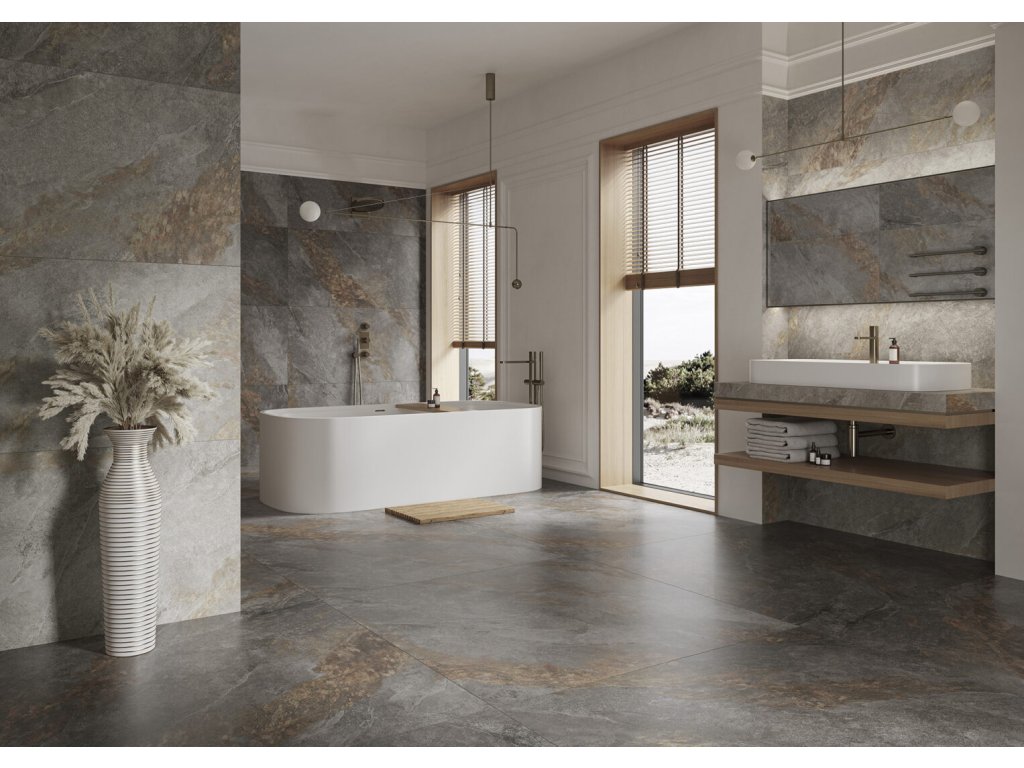Keramické dlažby z kolekce Auric mají také vynikající estetický vzhled, který dokonale napodobuje vzhled betonu. Nabízí se v třech různých odstínech šedé, což umožňuje snadné přizpůsobení interiéru a vytvoření moderního a elegantního vzhledu. Dlažby mají různé povrchové úpravy, včetně matné, lesklé, hladké a strukturované, což poskytuje větší možnosti přizpůsobení a vytvoření unikátních designů.