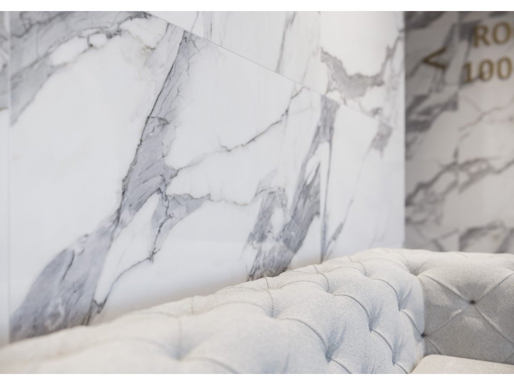 Vhodný výběr formátu dlaždic kolekce Calacatta Gold umožní dosáhnout dojem jednotného povrchu připomínajícího monolitický blok mramoru.