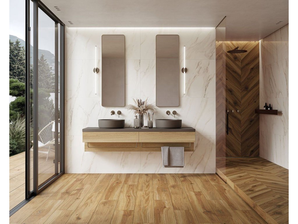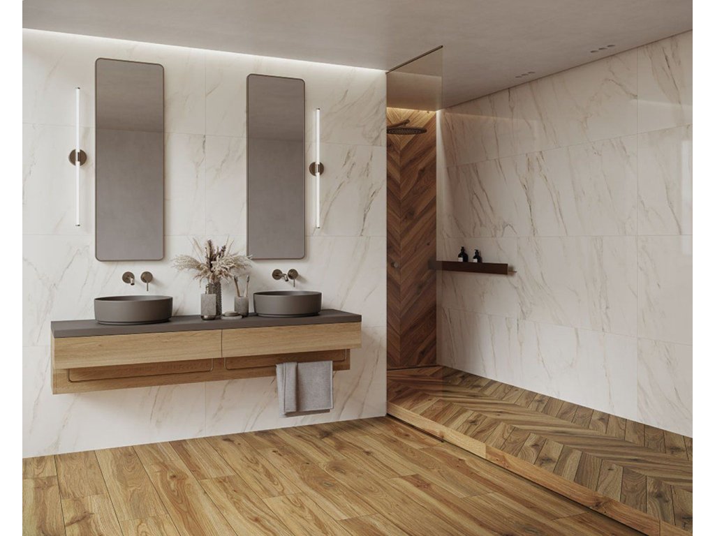 Díky tomu lze dlaždice Freeland Paradyż imitující dřevo pokládat nejen v ložnici nebo pracovně, ale také v koupelně. Dlažba Freeland Paradyż imitující dřevo se vyznačuje bohatým designem. Mají dřevěný vzor s typickými suky. Kolekce Freeland Paradyż je k dispozici v různých rozměrech. Díky tomu můžete vzhled obkladů dokonale přizpůsobit svým individuálním preferencím.