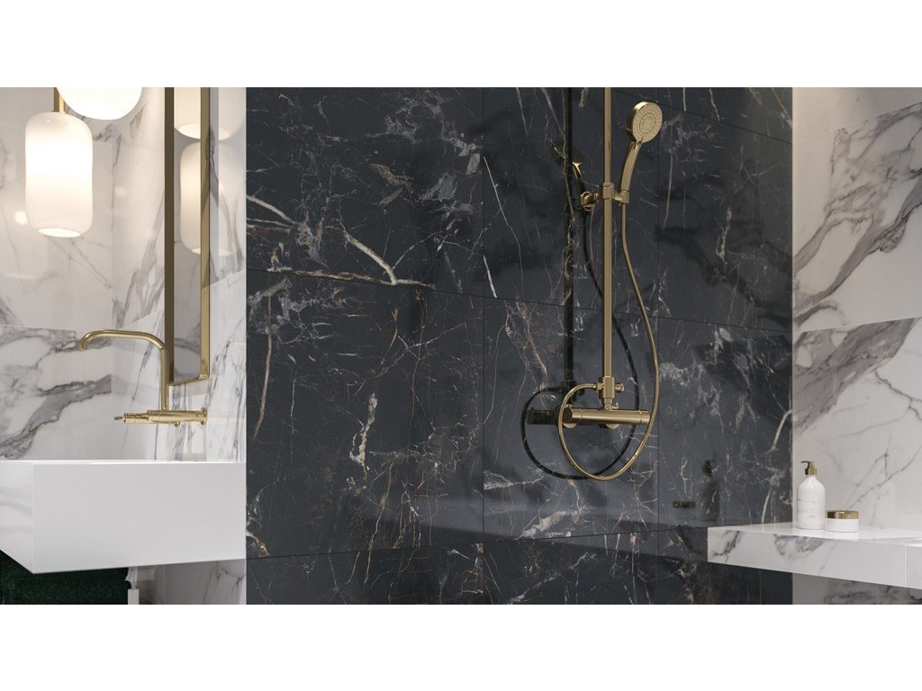 Tónovaný vzor obkladů perfektně napodobuje mistrnou síť žilek přírodního kamene a dodává tak atmosféru luxusu. Obklady a dlažby z kolekce Marquina Gold určené na stěny a podlahy přinesou do zařízení obývacího pokoje, kuchyně nebo koupelny luxus, ve kterém je péče o kvalitu materiálů spojena s budováním jedinečné atmosféry.