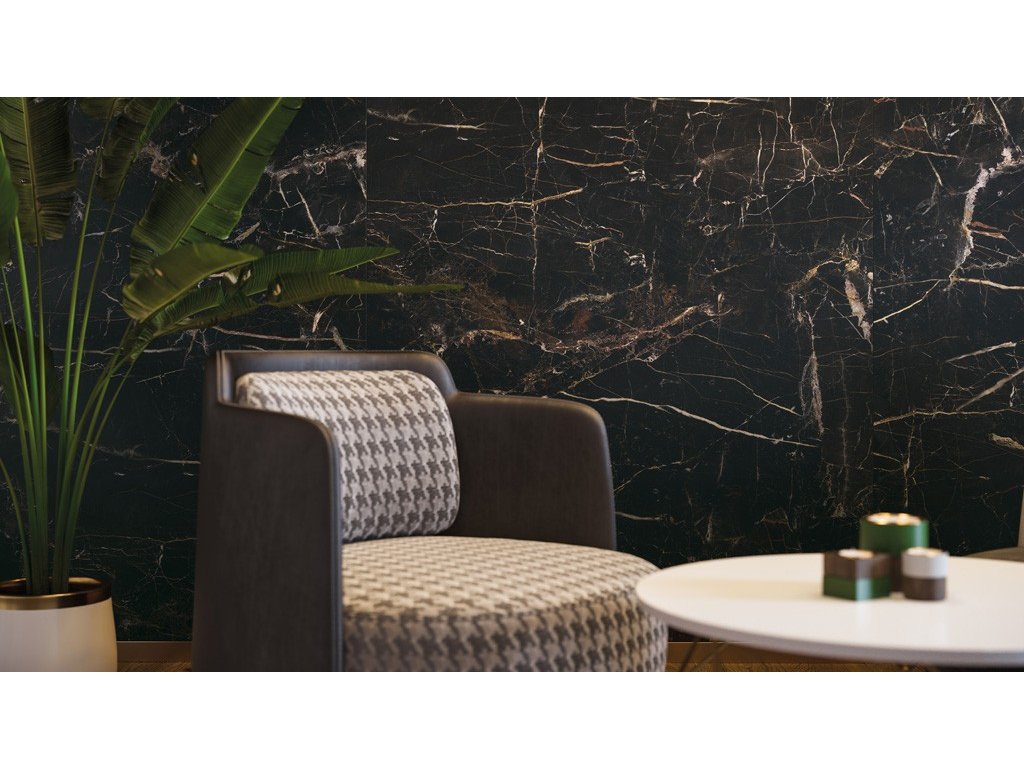 Tónovaný vzor obkladů perfektně napodobuje mistrnou síť žilek přírodního kamene a dodává tak atmosféru luxusu. Obklady a dlažby z kolekce Marquina Gold určené na stěny a podlahy přinesou do zařízení obývacího pokoje, kuchyně nebo koupelny luxus, ve kterém je péče o kvalitu materiálů spojena s budováním jedinečné atmosféry.