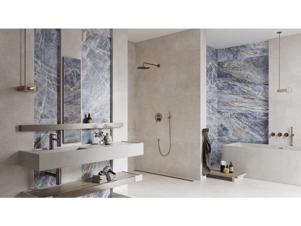 Okouzlí pulzováním eklektických ulic, koketuje zvuky nočního života ve vašich uších, udržuje si odstup svým chladem, betonovou šedí, jen aby za chvíli potěšila vaše smysly oslepující září neonových světel nebo vaše smysly uklidnila zelení rostoucí mezi budovami. New Your – Velké jablko – ovoce města, které má pro každého úplně jinou chuť. Stejně jako se v tomto kulturním hlavním městě světa setkávají různé styly a postavy, kolekce Modern Concrete jí inspirovaná je hrou asociací a různých estetik. Nic tu není jednoznačné a jasné. Nadčasová šedá vychází vstříc béžové a ztrácí se v klidné, čisté bílé. Proměnlivé struktury jako charakter New Yorku poskytují neomezené možnosti úpravy.