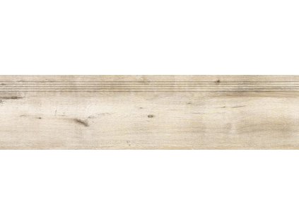 Schodovka RAKO v béžové a šedé barvě o rozměrech 30x120 cm s tloušťkou 10 mm a hladkým matným povrchem je ideální pro použití v interiéru Saloon. Imitace dřeva, glazovaná s...