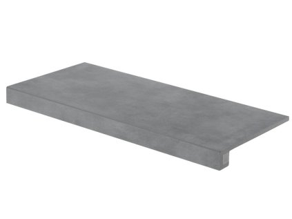Schodovka RAKO v šedé a bílé barvě o rozměrech 40x80 cm a tloušťce 10 mm s matným reliéfním povrchem imitujícím beton. Vhodná pro interiéry, glazovaná s protiskluzností R 10,...