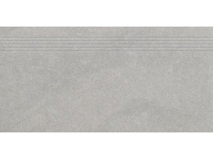 Schodovka RAKO v šedé barvě o rozměrech 30x60 cm a tloušťce 10 mm s hladkým matným povrchem, imitující kámen. Vhodná pro interiérové použití, s protiskluzností R 10 a odstínovým...