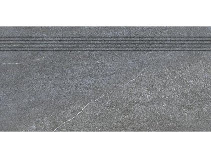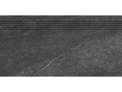 Schodovka RAKO v šedé a černé barvě o rozměrech 30x60 cm s tloušťkou 10 mm a reliéfním matným povrchem imitujícím kámen je ideální pro venkovní použití. Glazovaná s...
