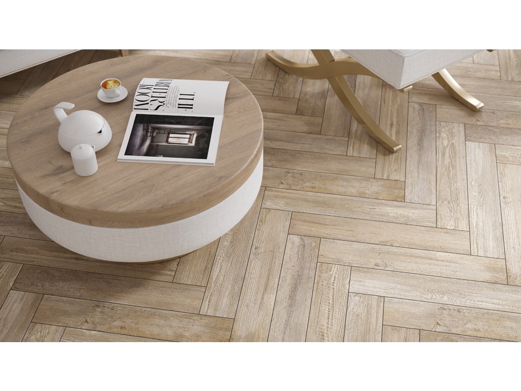 Dlaždice z kolekce Notta pokládané klasicky se budou nejlépe hodit pro minimalistické prostory, ve tvaru rybí kosti zase zdůrazní rustikální styl interiéru.