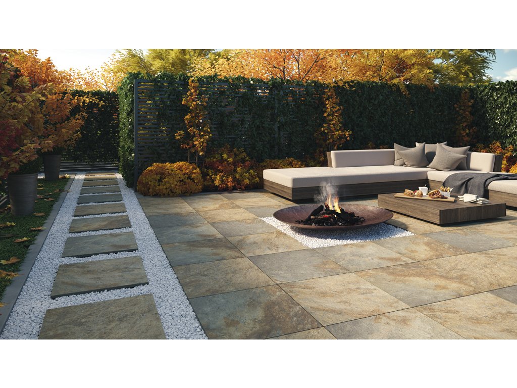 Toužíte po zahradě, ve které se teplý, přirozený oheň kamene bude ideálně kombinovat s uklidňující zelení? Série Rustic Gold 2.0 s charakteristickou, strukturou, vytvoří jedinečný a organický prostor. Sérii lze se výborně kombinovat se dřevem, carolithem, štěrkem, pískovcem nebo s betonovými konstrukcemi. Kolekce se proto uplatní jak v rustikální, tak v minimalistické struktuře. Výjimečná odolnost vůči vlivu povětrnostních podmínek a vysoká protiskluznost zaručí, že terasové dlaždice Rustic Gold 2.0 budou perfektním doplňkem každé krásné zahrady.Doplňkové parametry
