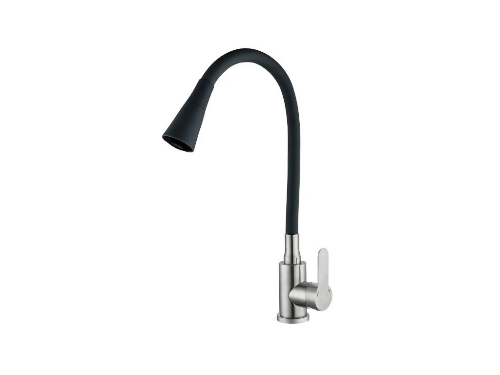 Dřezová baterie MIXXUS DAX-011 Refl.Black moderní baterie s elegantním černým silikonovým výtokem., která spojuje funkčnost, styl a spolehlivost. Vyrobena z nerezové oceli SUS304, je odolná vůči korozi, kyselinám i vysokým teplotám — ideální pro každodenní použití v kuchyni.Klíčové vlastnosti:
