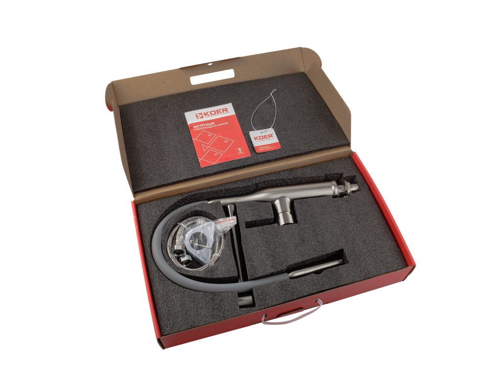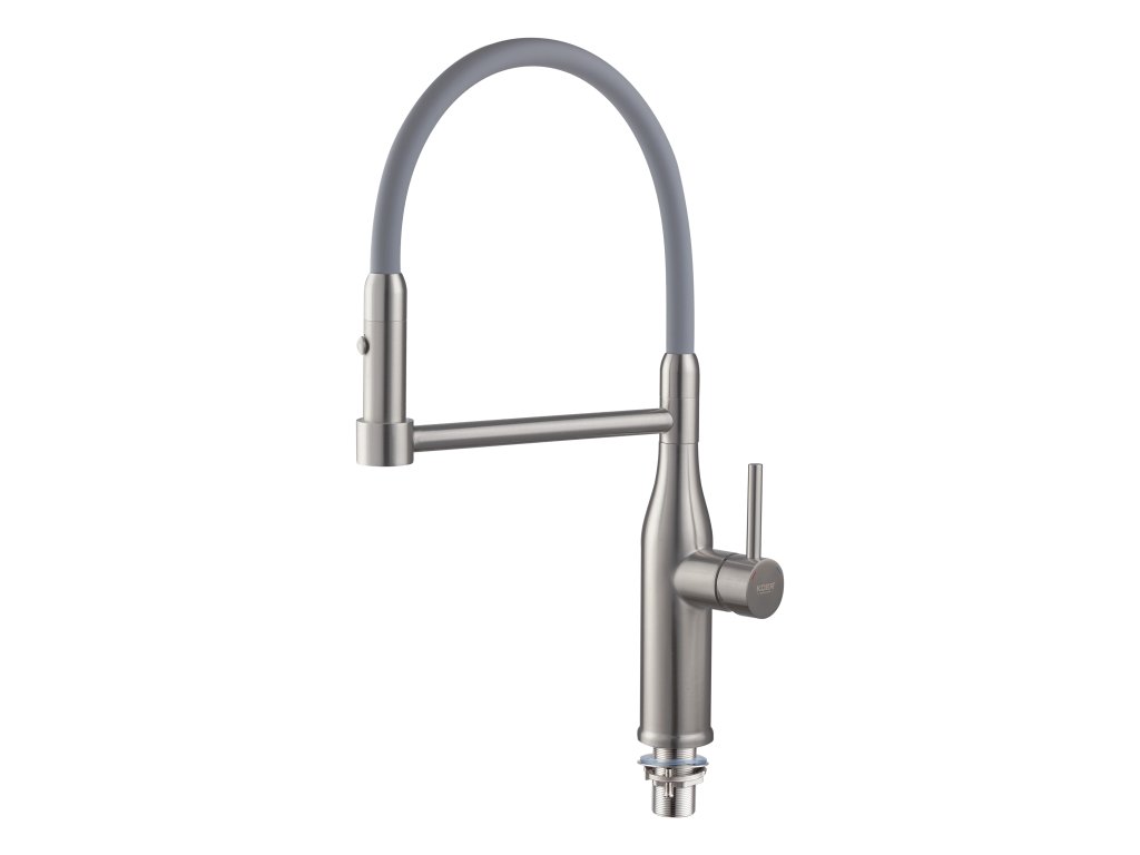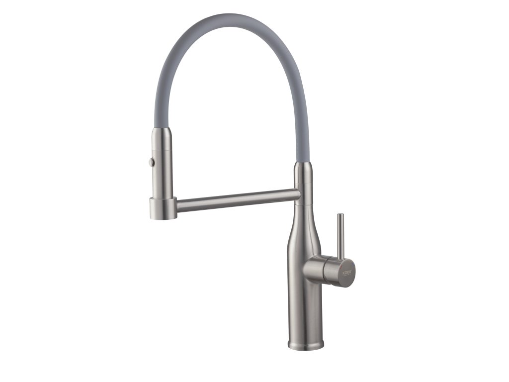 Kuchyňská baterie s flexibilním silikonovým výtokem KOER KI‑70005‑02 není jen funkčním prvkem vaší kuchyně, ale také stylovým řešením, které se dokonale hodí do každého interiéru. Díky modernímu designu se táto baterie stane ozdobou kuchyně a podtrhne její jedinečný charakter. Tělo z nerezové oceli dodává výrobku pevný a elegantní vzhled a zároveň zajišťuje odolnost proti korozi i mechanickému poškození.Hlavní předností této modelové řady je ohybný silikonový výtok, který umožňuje snadné směrování proudu vody a poskytuje maximální komfort při používání. Díky tomu lze pohodlně umývat nádobí různých tvarů nebo napouštět vysoké hrnce a kbelíky bez složitých manipulací. Optimální poměr výšky výtoku a celé baterie zajišťuje praktické využití i v menších kuchyních.