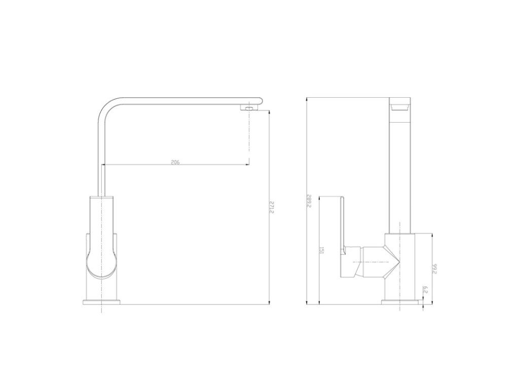 Dřezová stojánková baterie, Dita, s ramínkem nad pákou, výška 271 mm, chrom