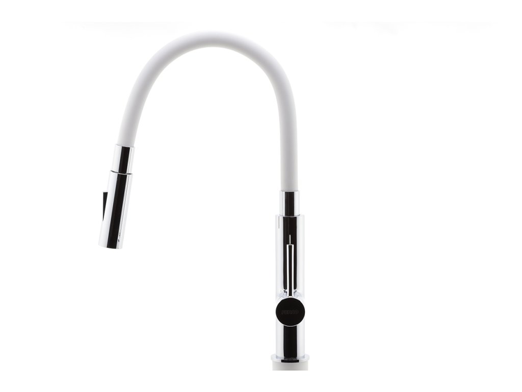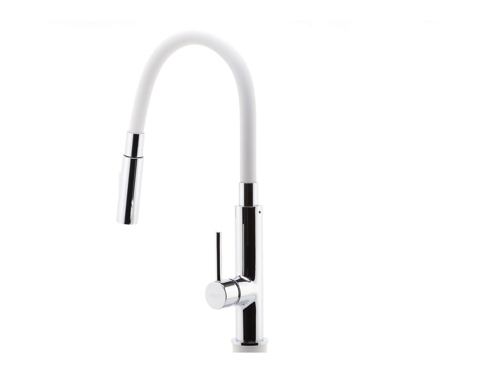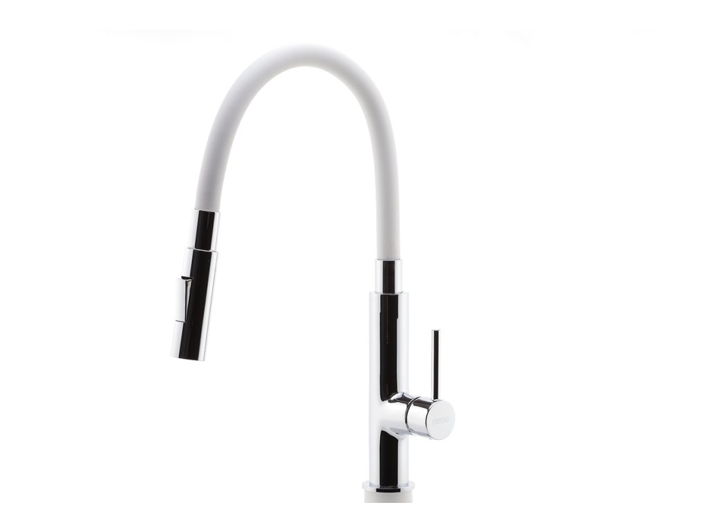 Dřezová stojánková baterie s bílým ramenem a sprškou