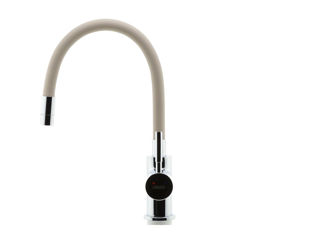 Dřezová stojánková baterie s elastickým ramenem, béžová-chro