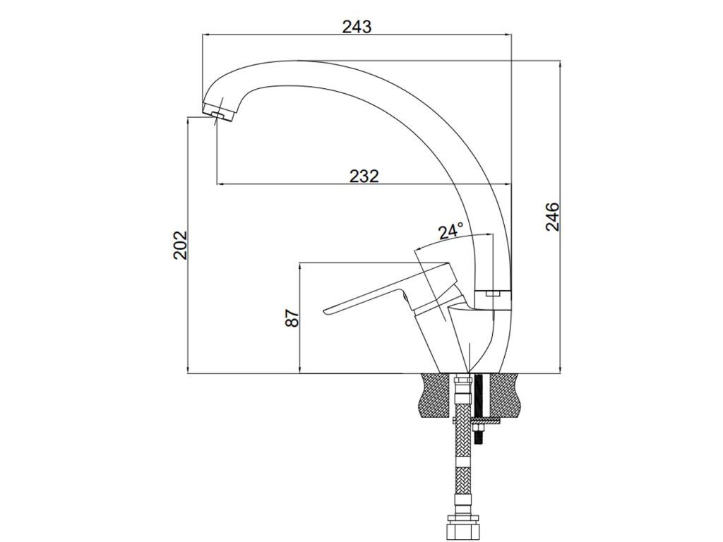 Dřezová stojánková mimoúrovňová baterie, Zuna, s ramínkem nad pákou, výška 240 mm, chrom