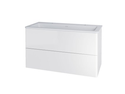 Siena, koupelnová skříňka s umyvadlem z litého mramoru, 1010x563x465 mm, spodní, 2 zásuvky, push-open systém, bílá lesk. Umyvadlo pro 2 baterie a 1 výpusť.