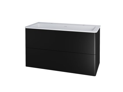 Siena, koupelnová skříňka s umyvadlem z litého mramoru, 1010x563x465 mm, spodní, 2 zásuvky, push-open systém, černá mat. Umyvadlo pro 2 baterie a 1 výpusť.