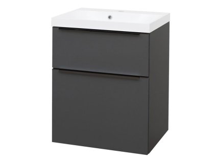 Mailo, koupelnová skříňka s keramickým umyvadlem, 610x720x476 mm, spodní, šedá mat mat, 2 zásuvky, černé madlo.