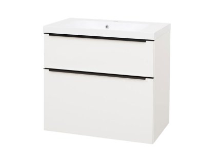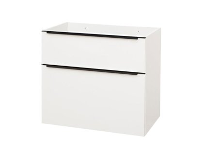 Mailo, koupelnová skříňka 605x700x476 mm, spodní, bílá mat, 2 zásuvky, černé madlo. Možno kombinovat s umyvadlem, popř. s koupelnovou deskou na skříňku.