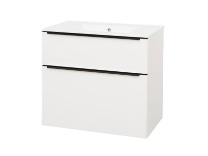 Mailo, koupelnová skříňka s keramickým umyvadlem, 810x720x476 mm, spodní, bílá mat, 2 zásuvky, černé madlo.