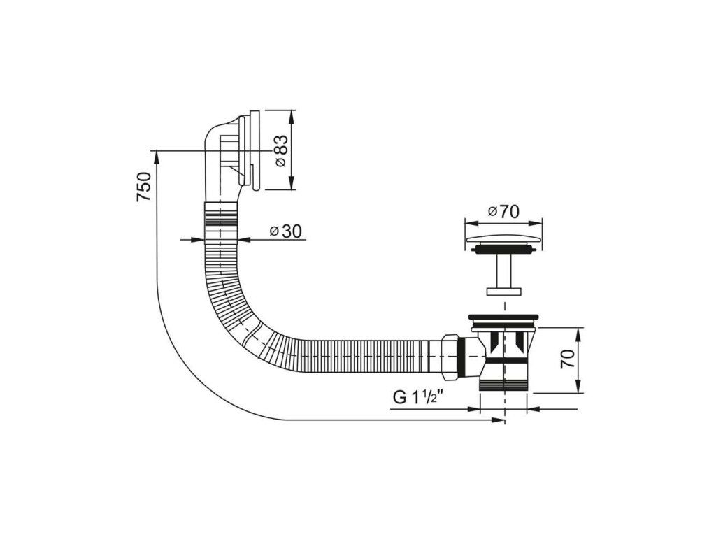 Vanová souprava s přepadem, ovládaný systémem clic-clac. Výhoda vanového clic-clacu je to, že za zazděnou vanou se již nenachází žádný mechanismus.Tento vanový click clack je jednoduše vyměnitelný.