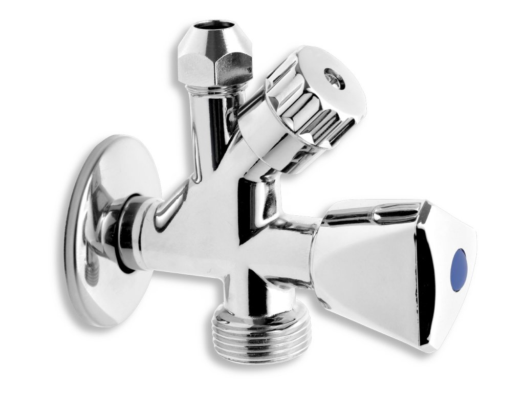 Kombinovaný roháček s ventilem pro pračku 1/2"x3/8"x3/4"