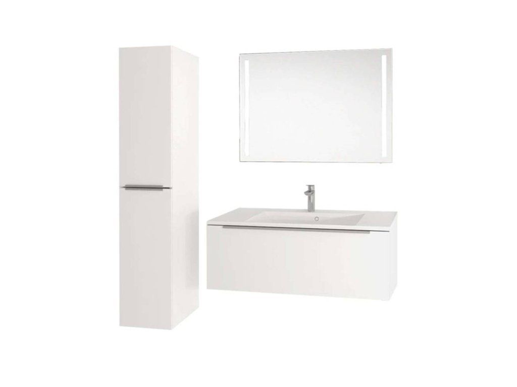 Mailo, koupelnová skříňka s keramickým umyvadlem 81 cm, bílá, chrom madlo
