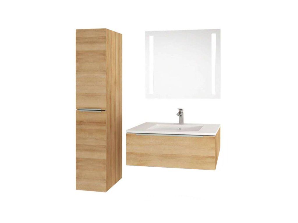 Mailo, koupelnová skříňka s keramickým umyvadlem 81 cm, dub Riviera, chrom madlo
