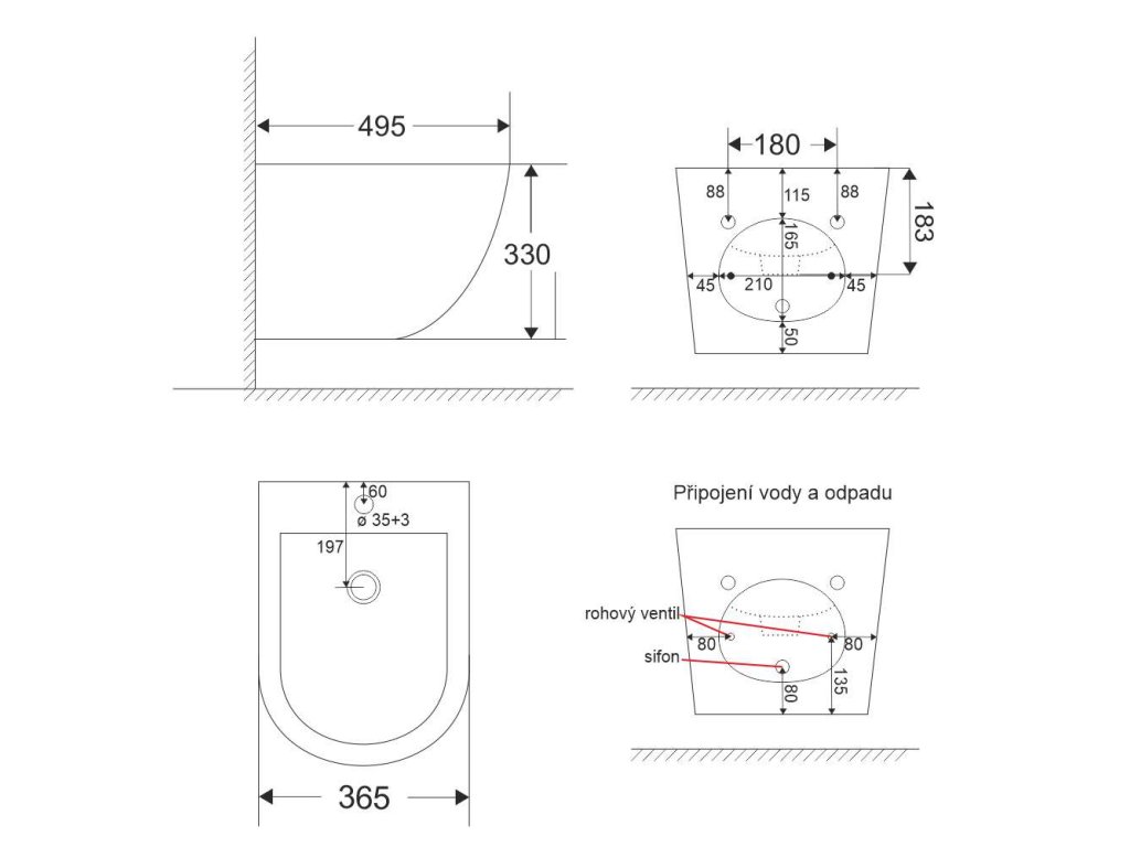 Bidet závěsný kapotovaný, 495x365x330, keramický, bílý. Design kompatibilní k VSD82xx.Doplňkové parametry