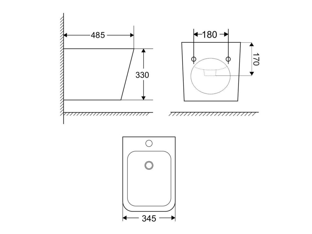 Bidet závěsný kapotovaný, 495x365x330, keramický, bílý. Design kompatibilní k VSD83xx.Doplňkové parametry
