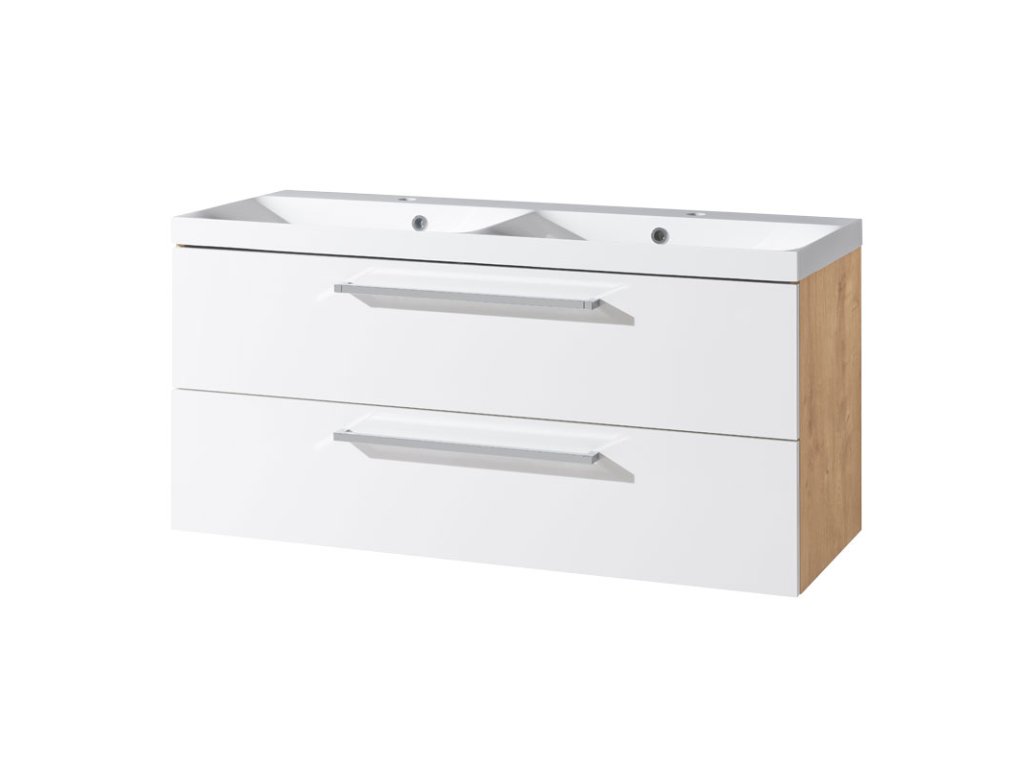 Mereo Bino, koupelnová skříňka s umyvadlem z litého mramoru 121 cm, bílá/dub