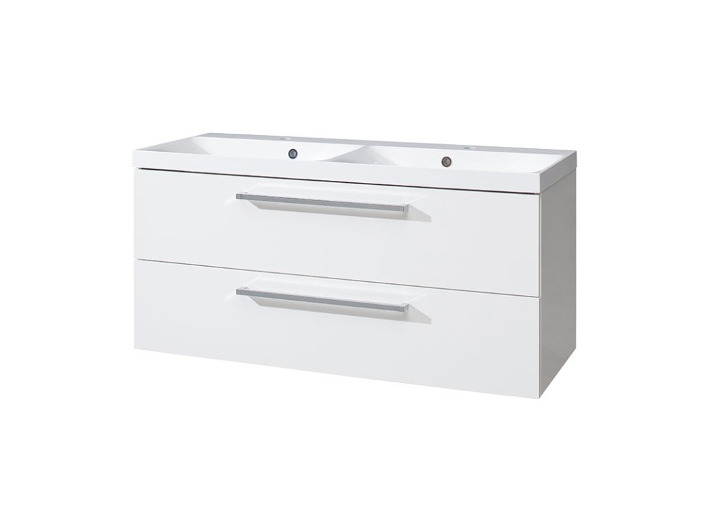 Mereo Bino, koupelnová skříňka s umyvadlem z litého mramoru 121 cm, bílá