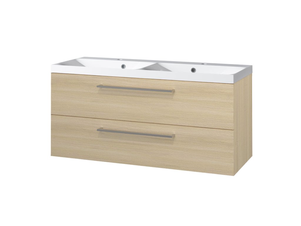Mereo Bino, koupelnová skříňka s umyvadlem z litého mramoru 121 cm, dub Sand Barbera