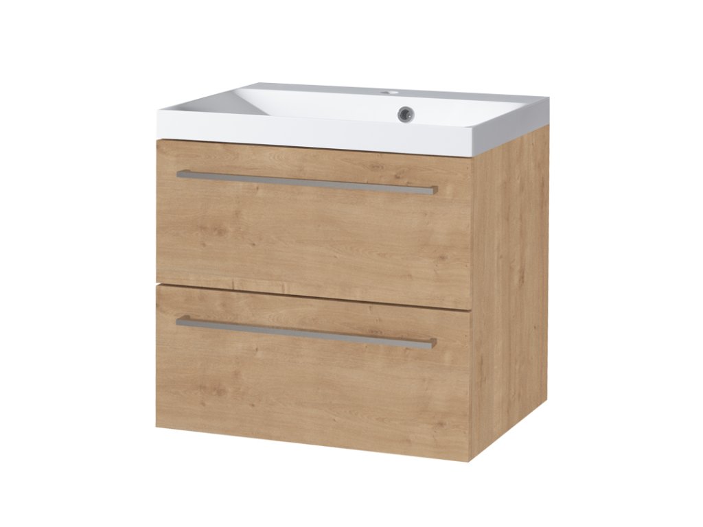 Mereo Bino, koupelnová skříňka s umyvadlem z litého mramoru 61 cm, dub Arlington