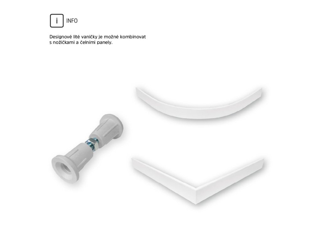 Varianta montáže litých vaniček (nožičky a panel nejsou součástí balení):