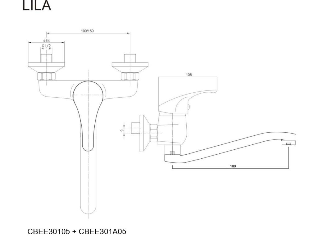 Tato dřezová nástěnná baterie pochází ze série vodovodních baterií Lila, která představuje cenově nenáročné řešení při zachování spolehlivosti a kvality povrchové úpravy. Nástěnné baterie dodáváme v rozteči 100 i 150 mm.- keramická kartuš 35 mm