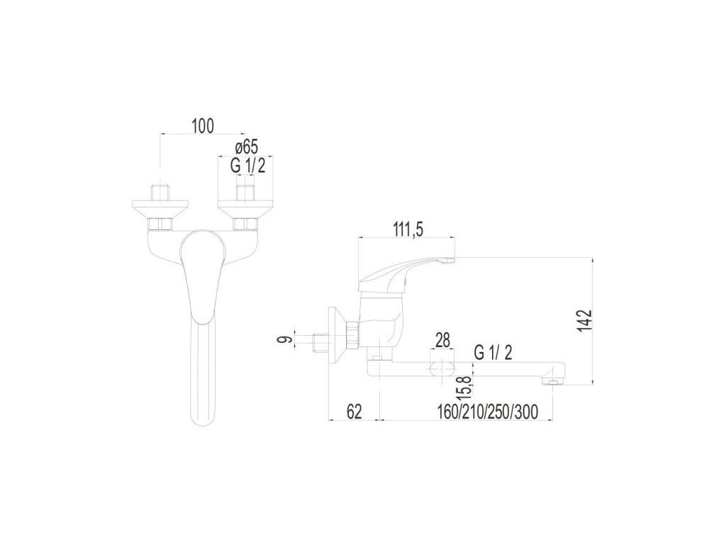 Mereo Dřezová nástěnná baterie, Sonáta, 100 mm, s ramínkem plochým rovným 300 mm, chrom