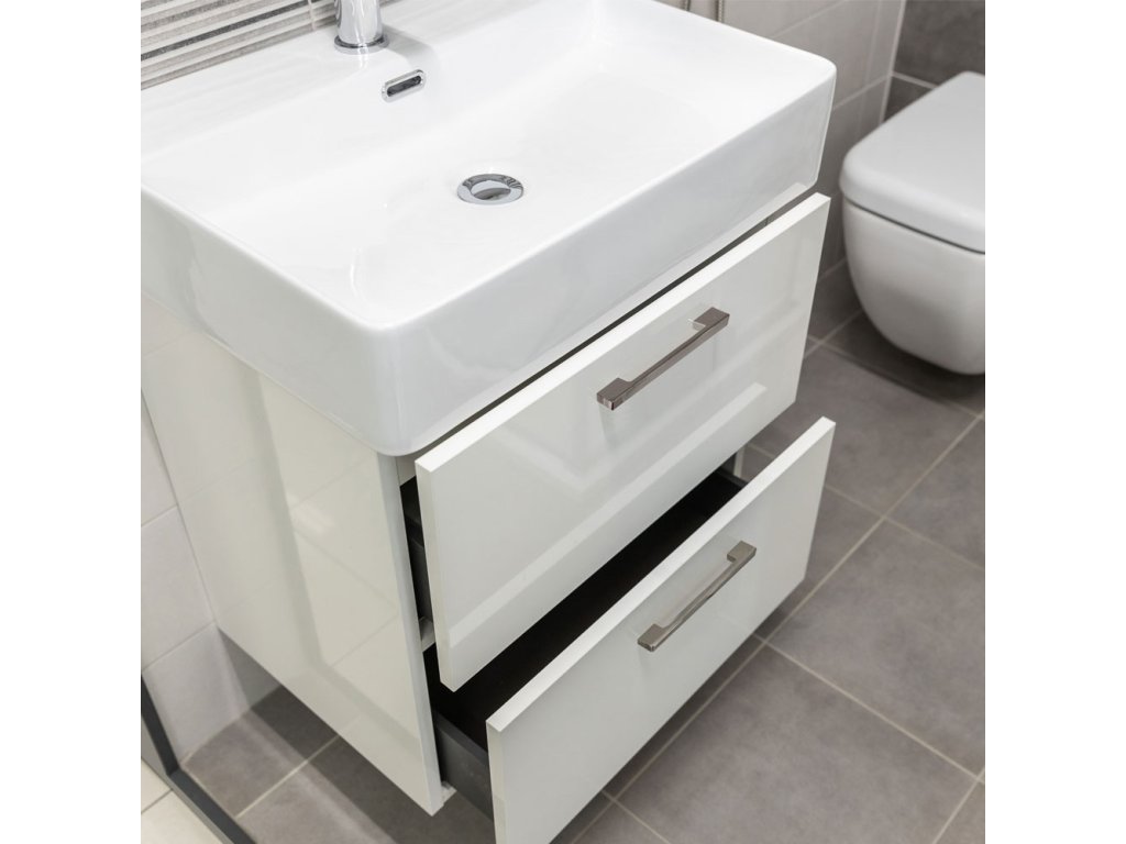Jednoduchost, efektivnost, elegance. To jsou hlavní společné jmenovatele koupelnového nábytku, který ozdobí každou koupelnu. Tato řada koupelnového nábytku je dodávána pouze v bílé barvě a je vytvořena pro univerzální použití s elegantním a jednoduchým stylem. Umyvadlové skříňky ve dvou šířkách jsou osazeny keramickými umyvadly. Šuplíky jsou vybaveny pojezdy s brzdou pro hladší dovírání. Skříňka je určená k zavěšení a je dodávána ve smontovaném stavu.Diskuze