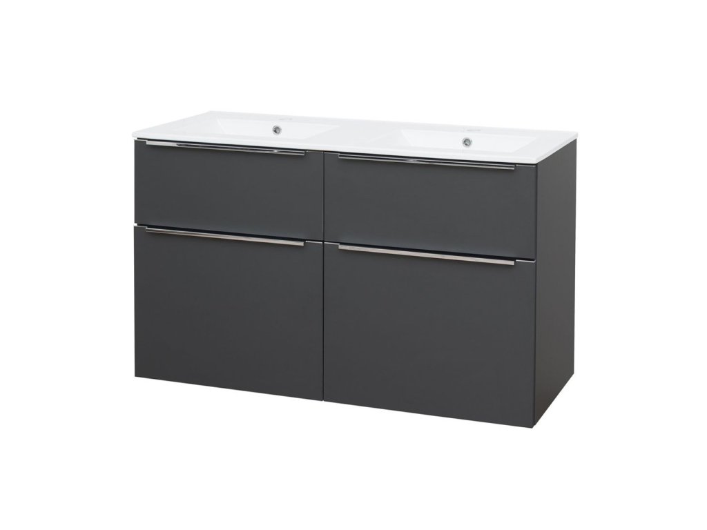 Mereo Mailo, koupelnová skříňka s keramickým umyvadlem 121 cm, antracit, chrom madlo