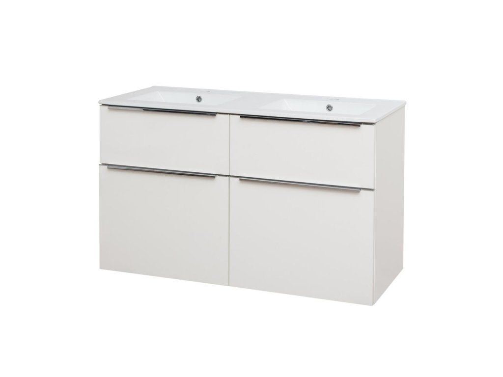 Mereo Mailo, koupelnová skříňka s keramickým umyvadlem 121 cm, bílá, chrom madlo