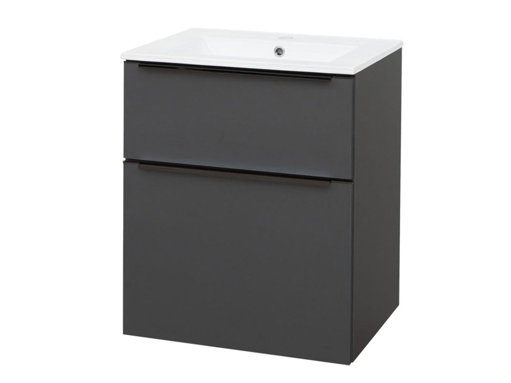 Mereo Mailo, koupelnová skříňka s keramickým umyvadlem 61 cm, antracit, černé madlo