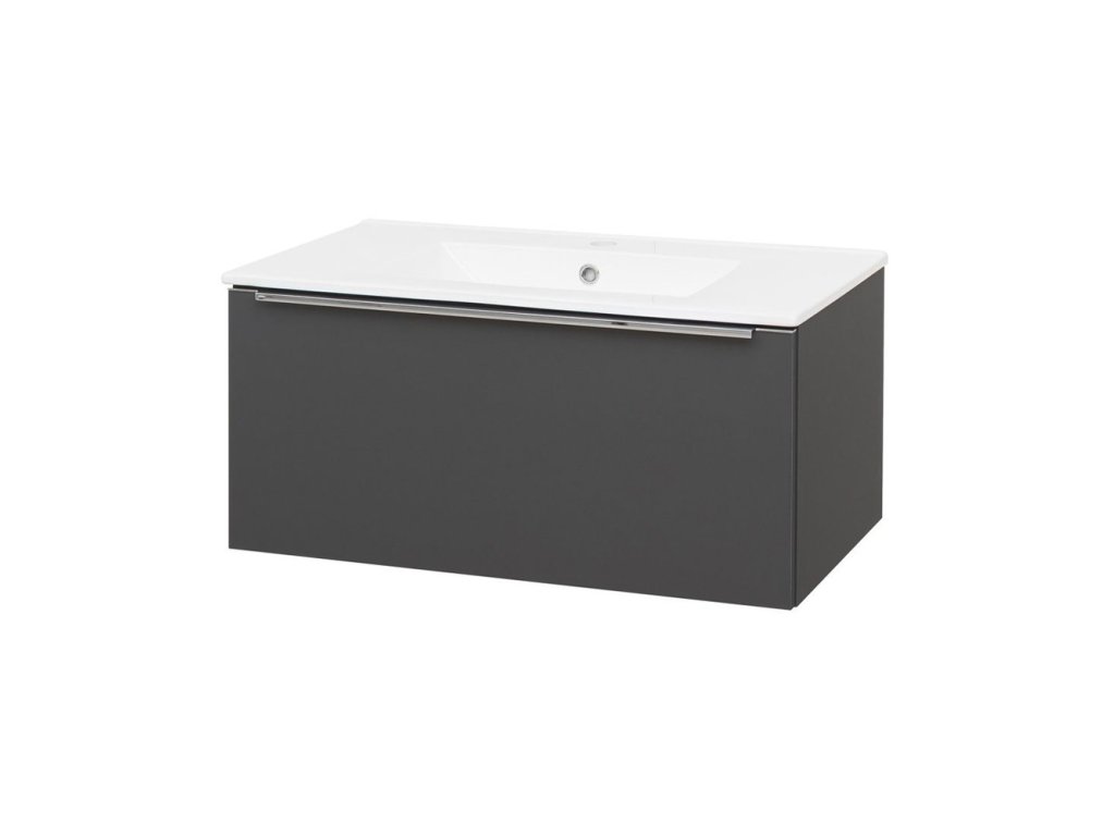 Mereo Mailo, koupelnová skříňka s keramickým umyvadlem 81 cm, antracit, chrom madlo