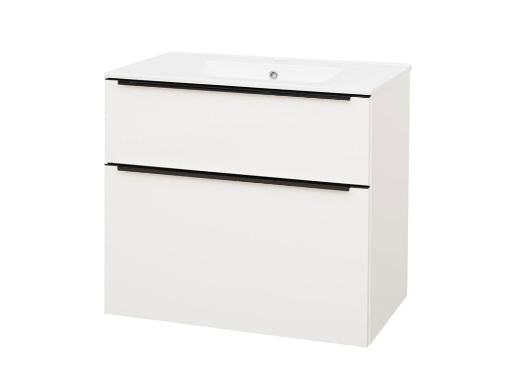 Mereo Mailo, koupelnová skříňka s keramickým umyvadlem 81 cm, bílá, černé madlo