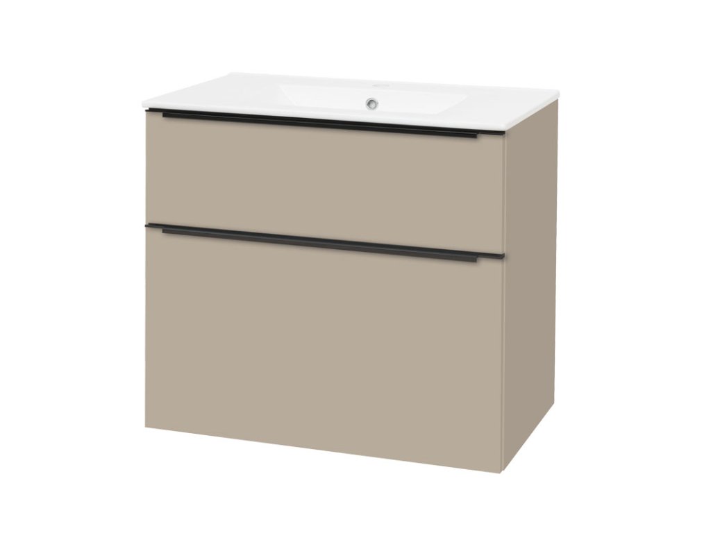Mereo Mailo, koupelnová skříňka s keramickým umyvadlem 81 cm, šedý kámen, černé madlo