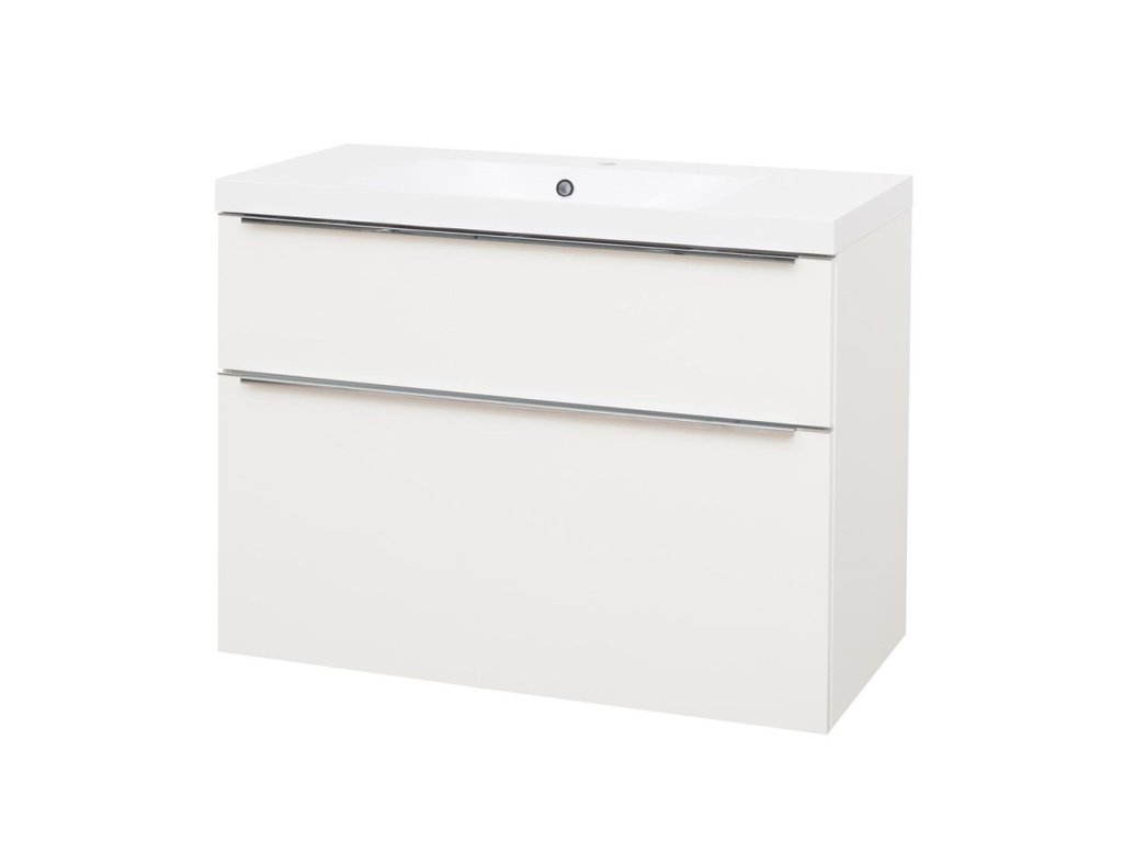 Mereo Mailo, koupelnová skříňka s umyvadlem z litého mramoru 101 cm, bílá, chrom madlo