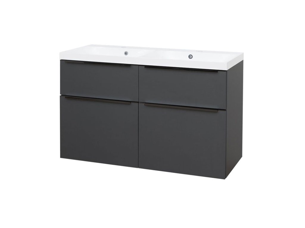 Mereo Mailo, koupelnová skříňka s umyvadlem z litého mramoru 121 cm, antracit, černé madlo