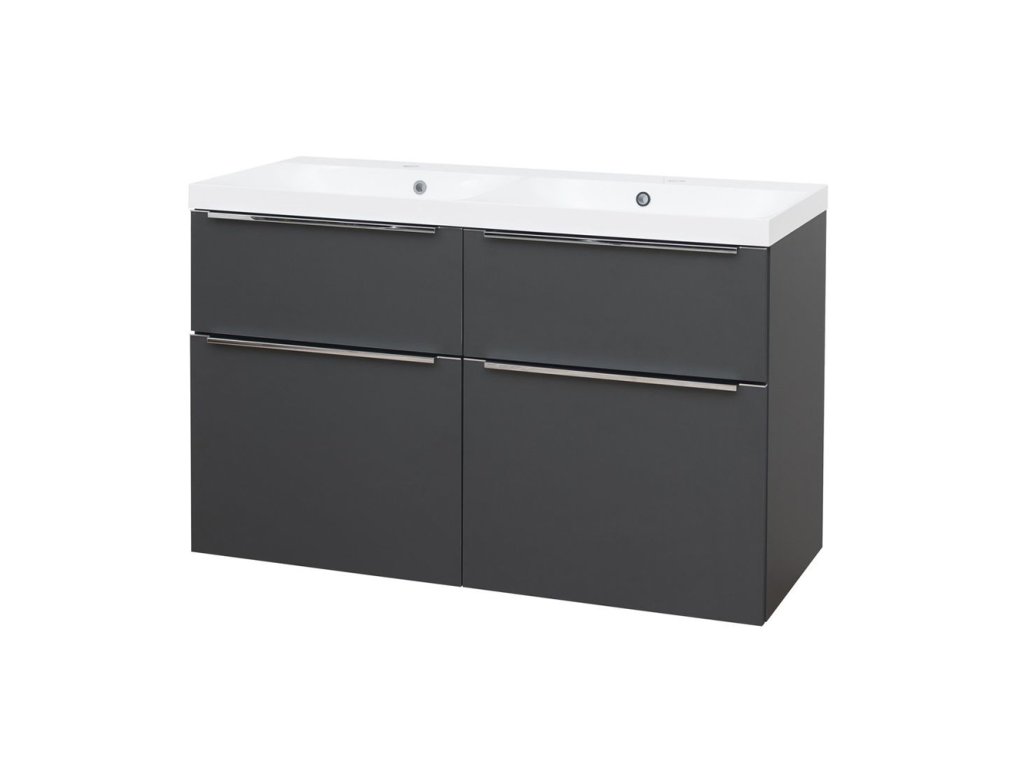 Mereo Mailo, koupelnová skříňka s umyvadlem z litého mramoru 121 cm, antracit, chrom madlo