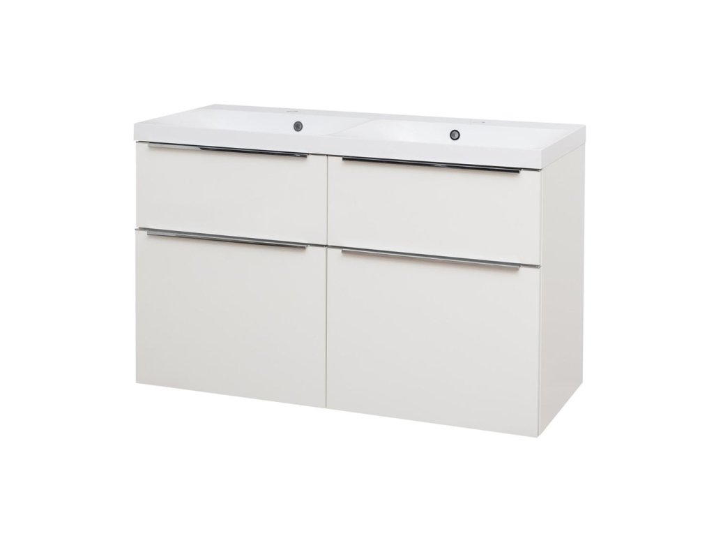 Mereo Mailo, koupelnová skříňka s umyvadlem z litého mramoru 121 cm, bílá, chrom madlo